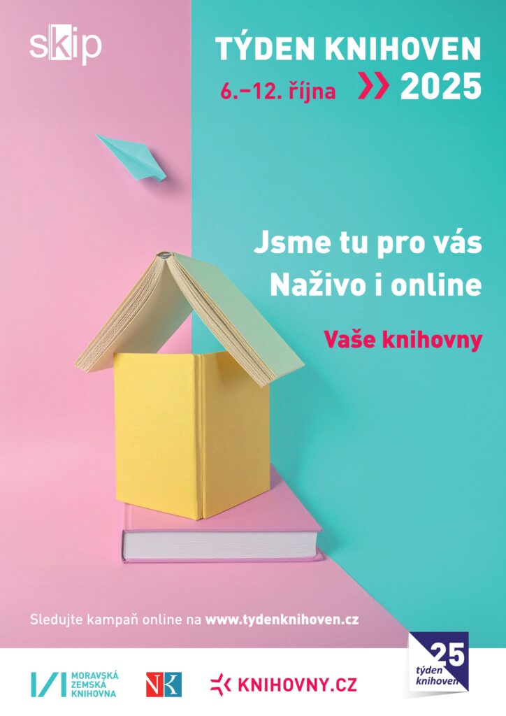 Zapište si do diářů týden od 6. do 12. října 2025. Startuje Týden knihoven – tradiční akce SKIP. Ať už zavítáte osobně do své oblíbené knihovny (a že jich máme po celé zemi 6 133!), nebo se připojíte online na webu Knihovny.cz, čeká vás bohatý program.